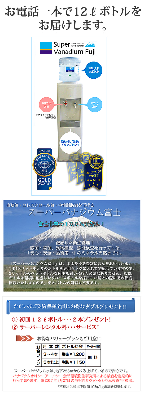 空のボトルは『スーパーバナジウム富士』をお届けした際にデリバリースタッフが新しいボトルと交換いたします。
