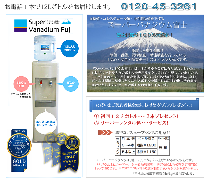 ※ スーパーバナジウム富士(源水)放射性物質測定結果報告書(H29.3.27)はこちら